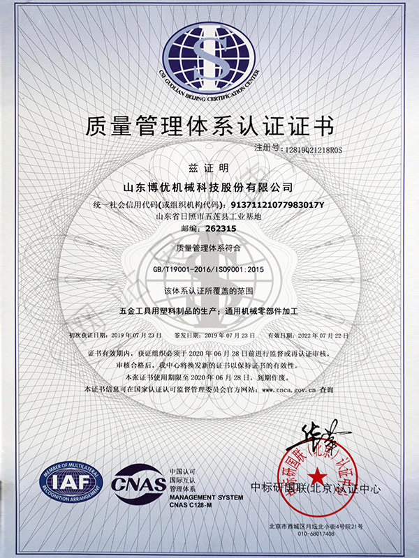 山東博優機械科技股份有限公司坐落在山東省日照市五蓮縣工業園(五蓮縣日照路與山西路交匯處)。